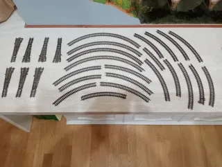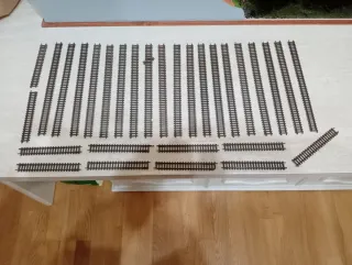 Set di binari per trenini in miniatura, compatibili con sistemi 2N e 3N. Ideale per modelli e collezionisti. - Varietà di sezioni di binario rettilineo. - Sezioni di binario curvo. - Pezzi di deviazione e incrocio.
