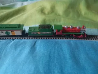 Set di trenini di Natale Bachmann. Il motore della locomotiva funziona bene ma bisogna ma ci sono problemi con le ruote, guardare bene le foto. Non accetto restituzione. Si può usare con qualsiasi percorso sia Fleischmann che minitrix. - Locomotiva rossa e verde. - Carrozze verdi con decorazioni natalizie. - Carrozza rossa. - Scritta Spirit of Christmas sulla locomotiva.
