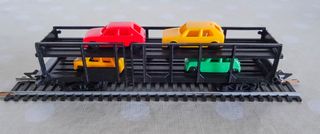 Carrozza merci per treni in scala HO della marca Jouef. Ideale per collezionisti e appassionati di modellini ferroviari. - Carrozza merci di colore nero. - Include vari trenini giocattolo colorati (rosso, giallo, verde). - Compatibile con binari ferroviari HO. Sconto per lotti. Ritiro a mano a Valencia. Spedizione a carico dell'acquirente.