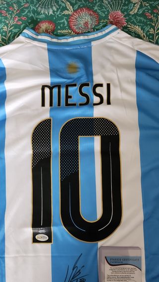Maglia Argentina Messi autogafata con certificato di autenticità verificabile online.