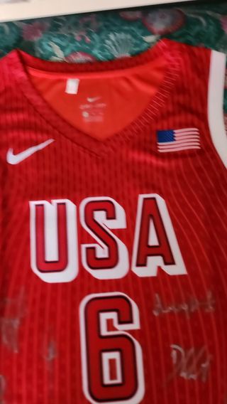 Maglia USA Lebron James autografata Team Usa Campione Olimpico 2024 con certificato autenticità formato libro.