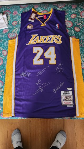 Maglia Lakers Kobe Bryant autografata Kobe Bryant Lebron James Shaquille O'Neal Magic Johnson Kareem Abdul Jabbar con certificato di autenticità verificabile online.