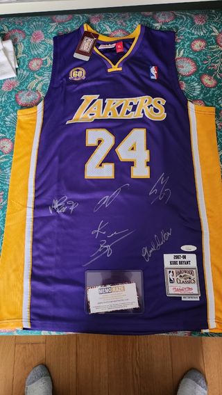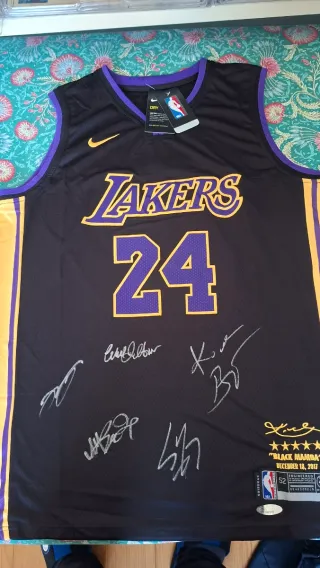 Maglia dei Los Angeles Lakers numero 24, autografata da Kobe Bryant Lebron James Magic Johnson Shaquille O Neil Kareem Abdul Jabbar con certificato di autenticità