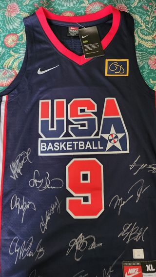 Maglia USA Micheal Jordan autografata Dream Team 1992 con certificato di autenticità formato libro.