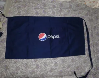 Grembiule da barista con logo Pepsi. grembiule nuovo, corto da barista, con logo della Pepsi e tasca centrale, colore blu, misura 35 cm x 67 x altre info scrivetemi - Colore blu scuro. - Logo Pepsi centrale.