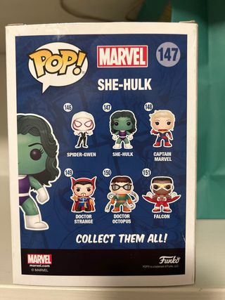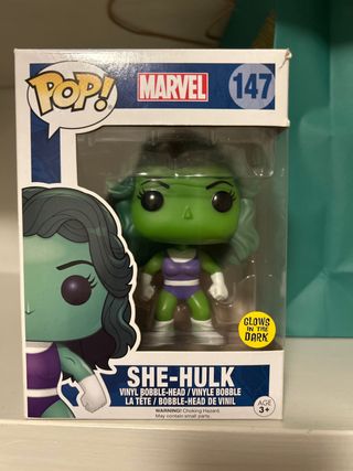 Action figure di She-Hulk della Marvel, numero 147 della serie Funko Pop!. - La figura Glows in the Dark si illumina al buio. - Vinile Bobble-Head. - Età consigliata: 3+.