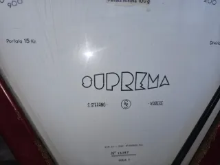 Bilancia meccanica vintage Suprema di colore rosso. Perfettamente funzionante con colore originale dell'epoca - Design retrò. - Piatto di pesata in metallo. - Quadrante con indicazioni di peso.