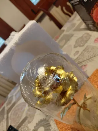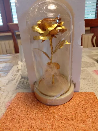 Splendida rosa laminata in oro, ispirata al classico La Bella e la Bestia. - Rosa dorata. - Cupola in vetro. - Base decorativa.