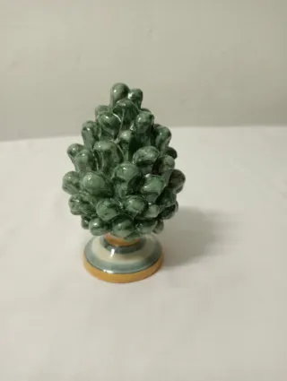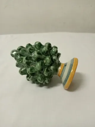 Splendida pigna decorativa in ceramica di Caltagirone. Alta 11 cm larghezza base 4,5 cm, circonferenza 21 cm. - Realizzata a mano. - Smalto lucido verde. - Base decorata a fasce colorate.