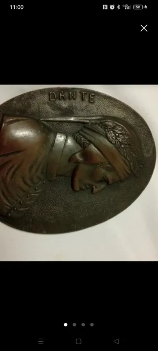 Scultura in ottone raffigurante Dante. Lunga 12 cm, larga 9 cm. - Dettagli finemente lavorati. - Materiale: ottone.