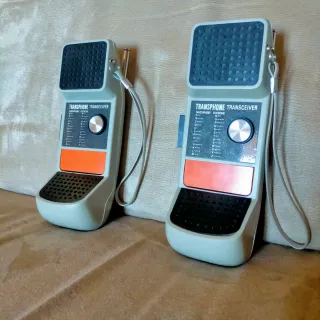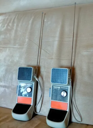 Walkie-talkie fine anni 70 con codice morse,in ottime condizioni, perfettamente funzionanti e completi della suo cinturino portatili e antenne, il prodotto viene venduto senza batteria, le batterie vanno inserite dietro, bisogna rimuovere la scocca posteriore.