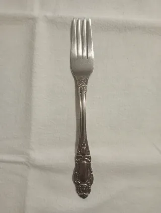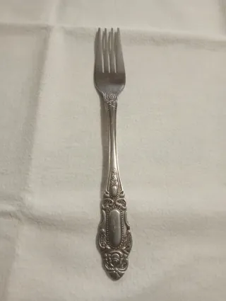 Elegante forchetta da collezione con un design vintage. Lunga 19 cm , larga 2,5 cm. - Materiale metallico lucido. - Manico decorato con motivi floreali e un inserto centrale. - Denti affusolati e ben definiti.