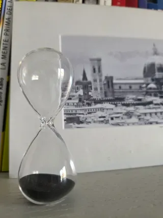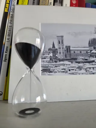 Elegante clessidra in vetro trasparente, perfetta come elemento decorativo. La sabbia al suo interno è di colore scuro. - Materiale: Vetro - Colore sabbia: Scuro