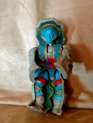 Personaggio di Stonedar della serie Masters of The Universe (MOTU). - Colore principale blu con dettagli dorati e rossi. - Dettagli grigi e verdi sul corpo e sugli stivali. - Design ispirato a un guerriero con elementi rocciosi o corazzati.