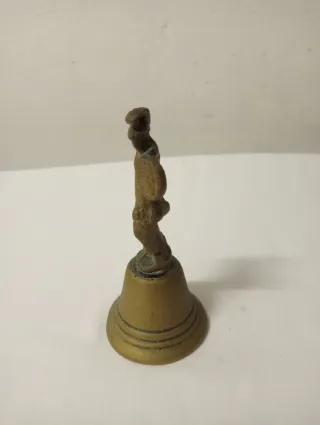 Campanello decorativo in ottone con figura di guerriero. Alto 12 cm, largo 6 cm. - Materiale: Ottone - Design: Figura di guerriero con scudo - Stile: Vintage