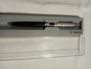 Penna Parker elegante, presentata nella sua confezione originale. Lunga 13 cm. - Design classico e raffinato. - Marchio Parker ben visibile.