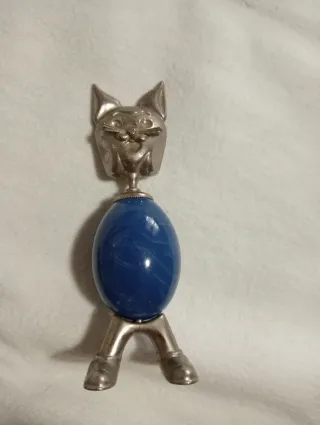 Statuina vintage raffigurante un uomo che tiene un gatto. Alta 4,5cm, larga 2 cm. - Materiale metallico. - Dettagli curati.