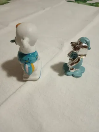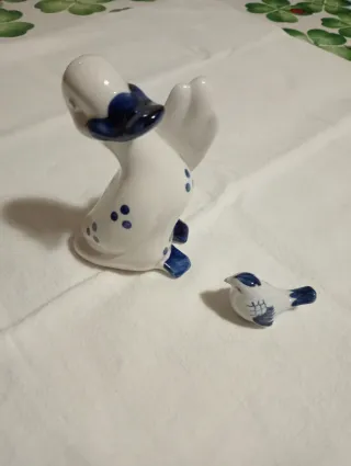 Set 2 Soprammobili Ceramica Anatra e Uccellino