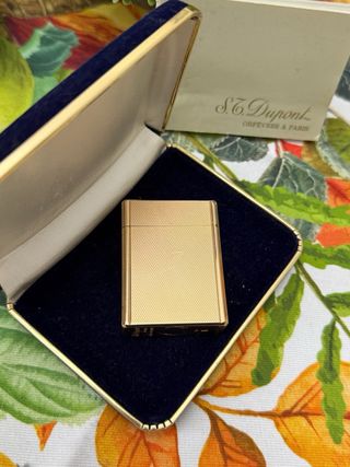 Elegante accendino Dupont vintage, un classico intramontabile. - Finitura in oro rosa e giallo 20u - Design classico e raffinato. - Custodia originale inclusa.