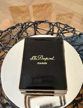 Elegante accendino S.T. Dupont Paris. - Design classico e raffinato. - Finitura nera lucida con dettagli dorati.