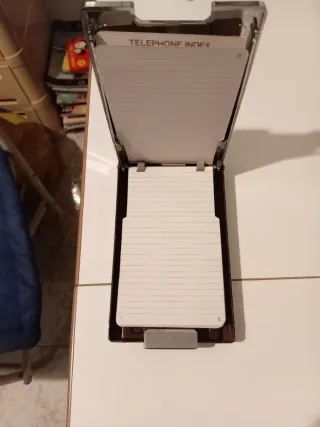Questa agenda meccanica vintage presenta un design elegante con inserti in legno e dettagli in metallo. - Struttura in metallo. - Pannelli laterali in legno effetto venato. - Indice alfabetico per rubrica. - Sezione MEMO.