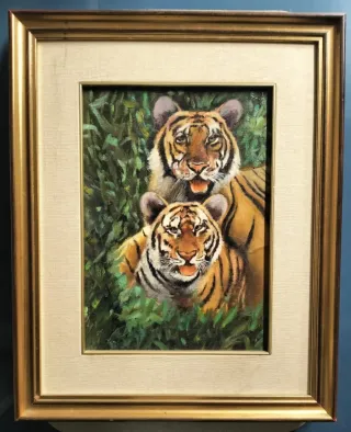 CREA UN'UNICO PACCHETTO TRA I 600 ARTICOLI CHE HO IN VENDITA. COSÌ PAGHI SOLO UN'UNICA SPEDIZIONE !! Inoltre Sconto del 10% su acquisti pari o superiori a 30€ e del 20% pari o superiori a 50€ . NO ALTRI SCONTI !!! Dipinto su tela raffigurante due tigri in un ambiente naturale. - Cornice dorata inclusa. - Dimensioni: 40 x 50 cm. - Vintage. In buone condizioni. Ritiro gratuito vicino al mio domicilio a Trieste. Eventualmente posso spedire