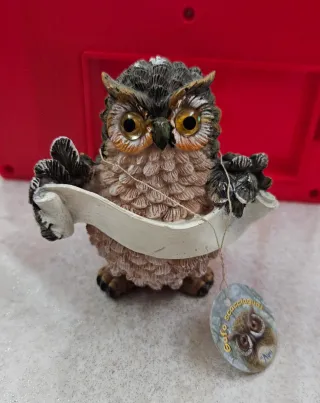 Simpatico gufo decorativo, perfetto per portare un po' di allegria. - Dettagli curati e colorati. - Realizzato in materiale resistente. - Include un cartellino con immagine del gufo e spiegazione.