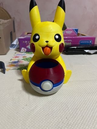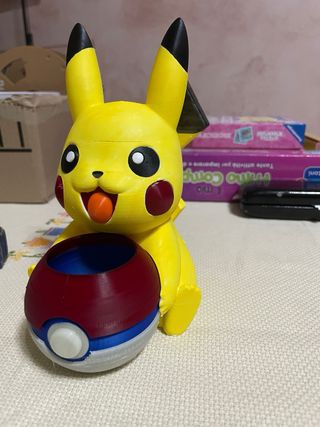 Originale porta oggetti a forma di Pikachu che tiene una Poké Ball. - Design unico ispirato a Pokémon. - Colori vivaci: giallo, rosso, blu e bianco. - Ideale per riporre piccoli oggetti.