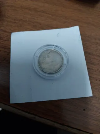Moneta conservata in una custodia protettiva trasparente. - Custodia rotonda in plastica. - Moneta con dettagli visibili.