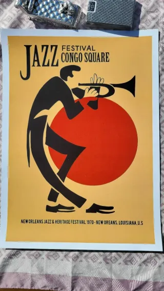 Poster formato A3 del Jazz Festival Congo Square. - Stampato su carta tipografica da 250gr. - Design ispirato al jazz e a New Orleans. - Spedizione in tubo rigido protettivo.