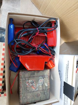 Scatola trenini Lima 1:45. Il coperchio della scatola ha della carta al posto del trasparente. I trenini guardando sotto sembrano nuovi, ho messo le foto, non ho modo io di testarli.