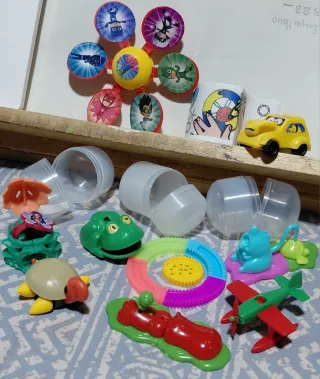 In vendita lottuccio di uova sorpresa e figurine. Include vari 10 uova sorpresa e figurine assortite di auto, treni, navi, draghi, re e personaggi.