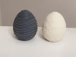 uova decorative in cera di soia profumata, perfette per la Pasqua. - Uovo grigio con decorazioni a righe e pois. - Uovo bianco con decorazioni a scaglie e pois. -colori misti a scelta