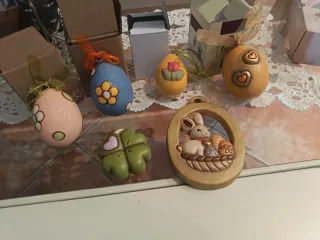 Lotto di bomboniere Thun a tema Pasqua. Prezzo non trattabile - Uovo azzurro con fiorellini gialli. - Uovo rosa con fiori bianchi e pois verdi. - Uovo giallo con cuori. - Uovo giallo con tulipano. - Quadrifoglio verde con cuore rosa. - Ciondolo ovale con coniglietto e uova.