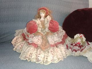 2 bambole in porcellana da collezione,altezza 18 cm e 40 cm