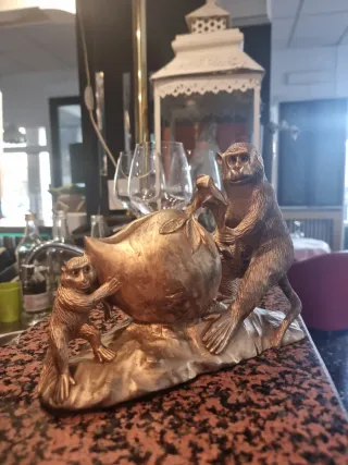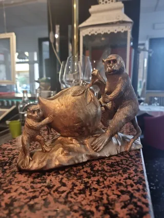 sculturA in legno rappresentantE delle scimmie,tutte'due con la Madre ed il piccolo una con un frutto , MiSURANO CM 26 x20 x 11