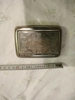 Elegante portatabacco e cartine vintage con una raffinata decorazione. - Design inciso con motivi floreali. - Materiale metallico. - Chiusura a scatto.