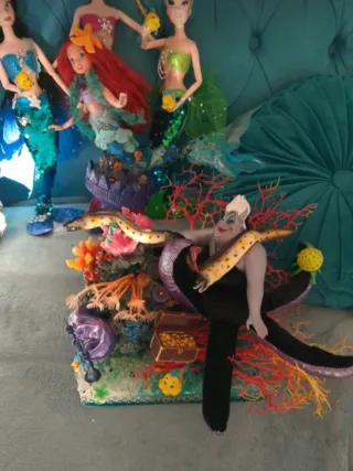 Bellissimo set a tema La Sirenetta con Ursula e Ariel. - Personaggi dettagliati. - Ambientazione marina colorata con coralli e piante acquatiche. - Ideale per collezionisti o fan del film.