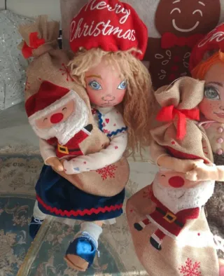 Set di due bambole in stoffa, dipinte a mano. - Ogni bambola è un pezzo unico. - Dettagli curati e colorati.