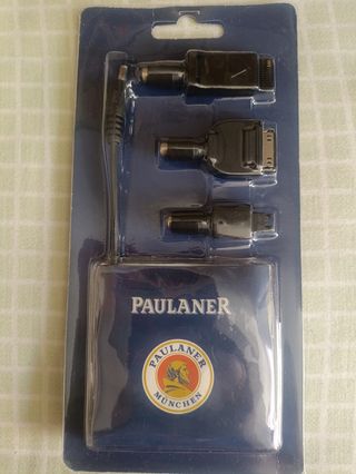 Prodotto di merchandising della marca di birra Paulaner. Completamente nuovo, non aperto. Oggetto da collezione, ma funzionante. Include una batteria con 3 adattatori per diversi vecchi telefoni cellulari Nokia, Siemens, Motorola e Sony. Per i nostalgici della tecnologia di inizio secolo o per i collezionisti di accessori per la birra. Molto difficile da trovare.
