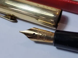 Fantastica penna stilografica vintage Parker 75 Premier Athens (Athenes), placcata in oro con lacca cinese. Pennino in oro 18k 750. Converter (cartuccia ricaricabile) originale incluso. Con tutto il suo corredo originale: cofanetto, scatola in cartone, libretto... La penna nonostante non sia mai stata usata ha dei segni del tempo.
