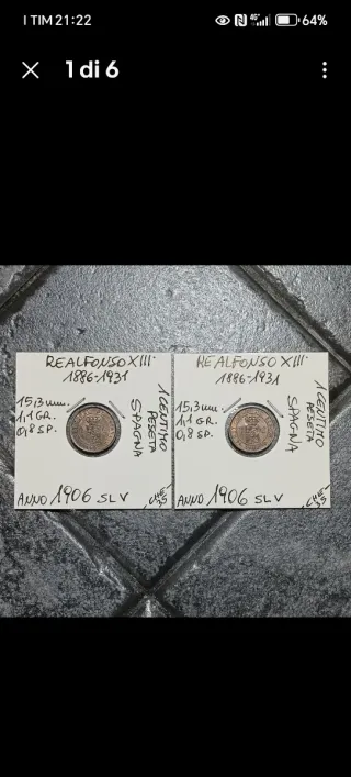 2 x 1 Centimo 1906 Variante SL V Re Alfonso XI