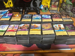 Lotto di 100 carte del gioco Disney Lorcana. Tutte carte diverse, nessun doppione. 5 rare garantite, di cui una super rara.