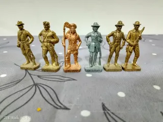 Lotto di 6 soldatini Kinder degli anni '80. - Altezza circa 4 cm. - Materiale metallo