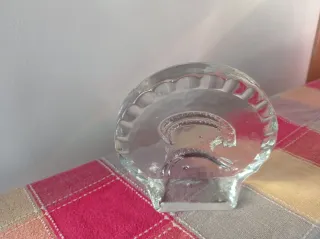 Elegante fermacarte in cristallo trasparente, con la figura del capricorno - Realizzato in cristallo. - Design con figura di capra. - Bordo decorato. Altezza 11 cm