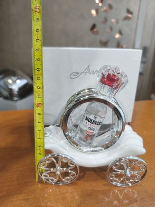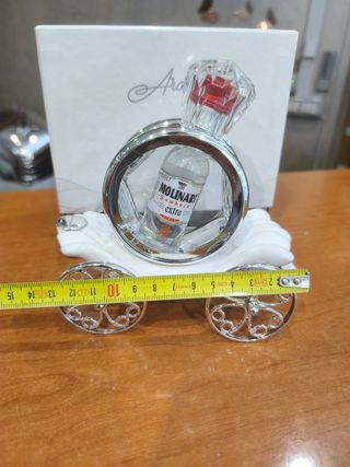 Oggetto nuovo pezzo unico Carrozza decorativa in cristallo, ideale per contenere una bottiglietta di liquore. - Design a forma di carrozza. - Realizzata in cristallo vetro e porcellana - Include una bottiglietta mignon di Molinari Sambuca Extra. Scatola luminosa con luce led