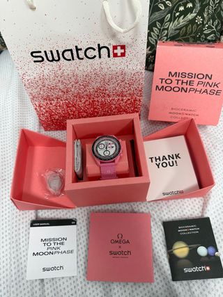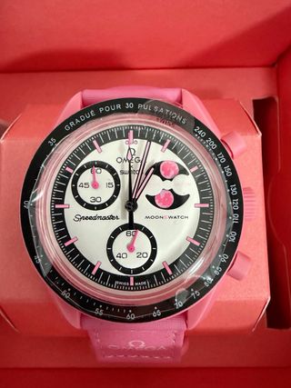 Orologio Swatch x Omega Mission to the Pink Moonphase. - Cassa in bioceramica. - Collezione MoonSwatch. - Include scatola e manuale.