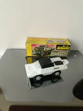 Commando XM706 Police Prodotto nel 1970 da Solido cod.224 bis Made in France Lunghezza cm 11,5 circa Con scatola originale Reperibilità difficile Condizioni:in buone condizioni vista l' età con piccole mancanze di colore.Mancano però le antenne posteriori ,i fari e l'altoparlante.La scatola ha segni,piccole abrasioni e una riparazione interne con nastro adesivo di carta.Quello che