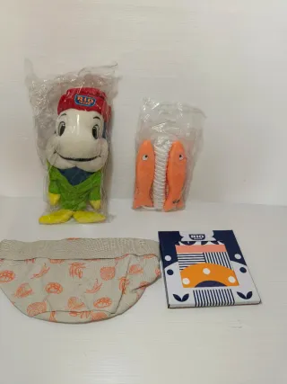 Gadget Rio Mare: - un sottopentola in ceramica e sugheroi - una corda per saltare - un peluche - un cestino portapane in stoffa. Nuovi. Prezzo per tutto.
