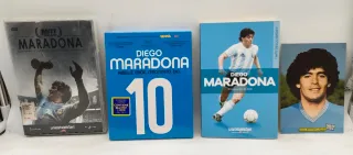 Collezione composta da 2 DVD + Blu Ray + Libro e Cartolina dedicati a Diego Armando Maradona. Cimeli ricordi del Campione detto "La Mano de Dios". - Combo NUOVA composta da Blu Ray + DVD del film in Edizione LIMITATA e NUMERATA (vedi foto), rara e ricercata, ancora imballata, MAI aperta. - DVD Miti del Calcio: Maradona, usato in ottimo stato. - Libro Diego Maradona 10, NUOVO. - Cartolina con foto di Diego Maradona al Napoli, anni '80, con firma stampata sul retro, rarità INTROVABILE, Vintage.